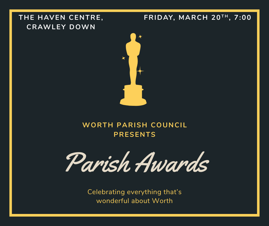 The 2025 Parish Awards event was a huge success, and we're delighted to bring you details of the 2026 evening. It's going to take place on Friday, March 20th at the Haven Centre in Crawley Down. Further details will be announced in due course, but in the meantime we're looking for nominations. If you'd like to see a person or organisation receive some well-deserved recognition, you can nominate by clicking here.